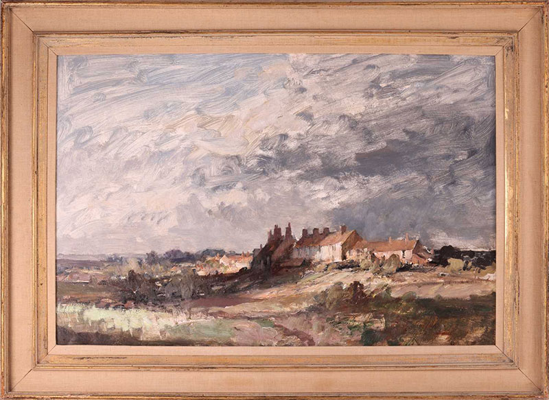 Edward Seago 'Cottages on the Rise, Norfolk'