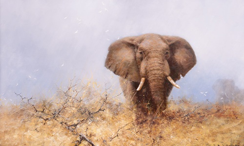 Wildlife paintings — particularly elephants — are among the most desirable, followed by African landscapes and large-scale aviation or steam locomotive works.